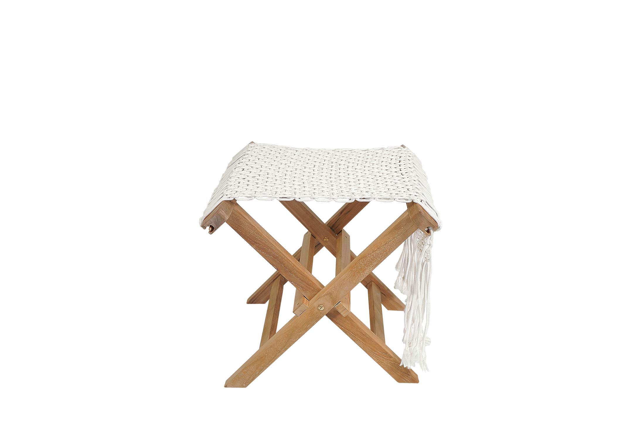 Apoio para os pés dobrável para jardim em teca com tecelagem em macramé. O apoio para os pés dobrável Venezia é ideal combinado com a espreguiçadeira Tripolina ou a espreguiçadeira Venezia, para um jardim confortável e requintado.