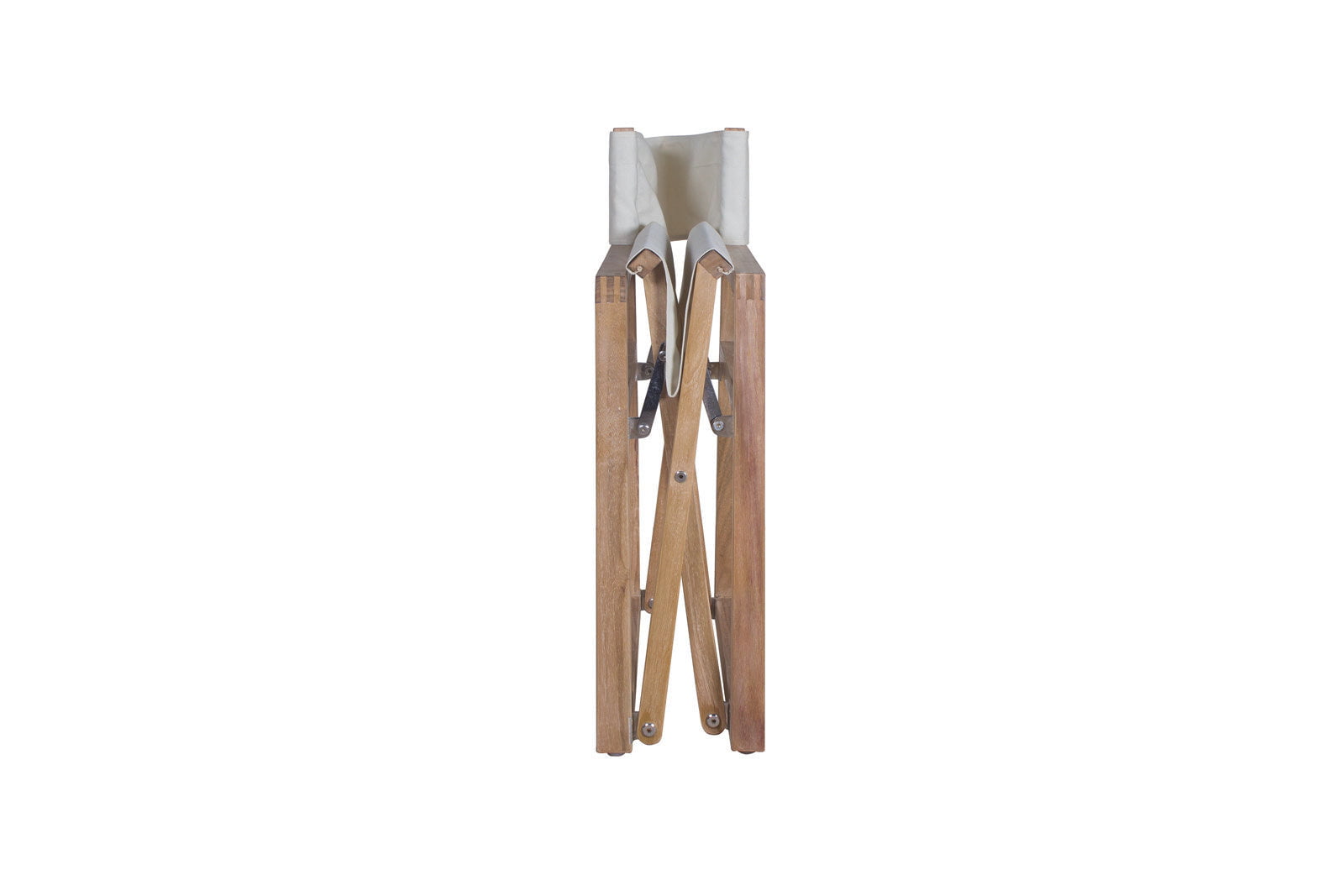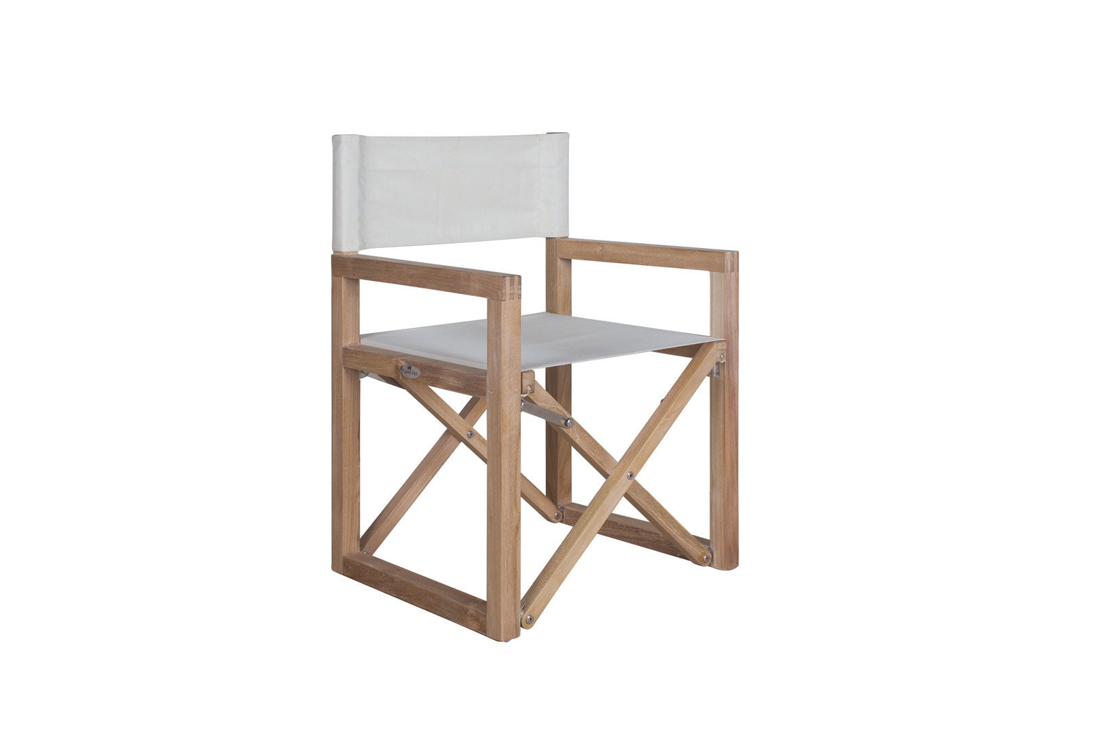 A cadeira dobrável “diretor” Venezia é um grande clássico: a coleção inclui diferentes variações do mesmo design básico. Apesar de leve e fácil de transportar, a estrutura em madeira de teca garante estabilidade e robustez. O tecido está disponível em diversas cores.