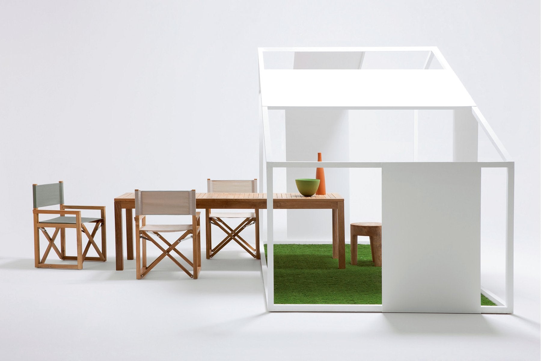 Poltrona de Diretor em madeira de teca, modelo Venezia. A cadeira do diretor é um dos móveis de madeira mais procurados; este modelo de poltrona de exterior linear e quadrada caracteriza-se pelas secções quadradas dos componentes em madeira maciça que conferem uma linha rigorosa e cativante, capaz de preencher o espaço em que está inserida com sobriedade e elegância. A tela desta cadeira de diretor outdoor pode ser em tecido, tecido acolchoado ou batyline. Para caracterizar e tornar a sua cadeira de realizador mais original, também está disponível uma capa lateral a condizer com o tecido.