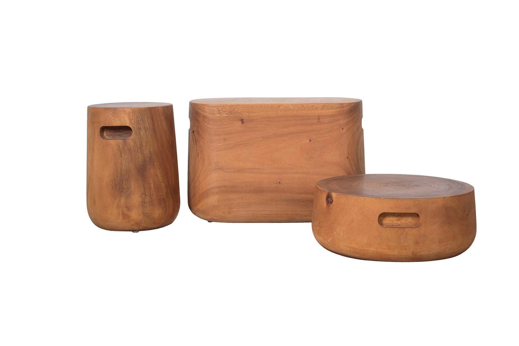 Mesa de centro cónica em madeira Suar adequada para criar um conjunto em conjunto com as outras duas da linha Tea Time ou sozinha, para completar um móvel de jardim ou terraço.