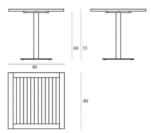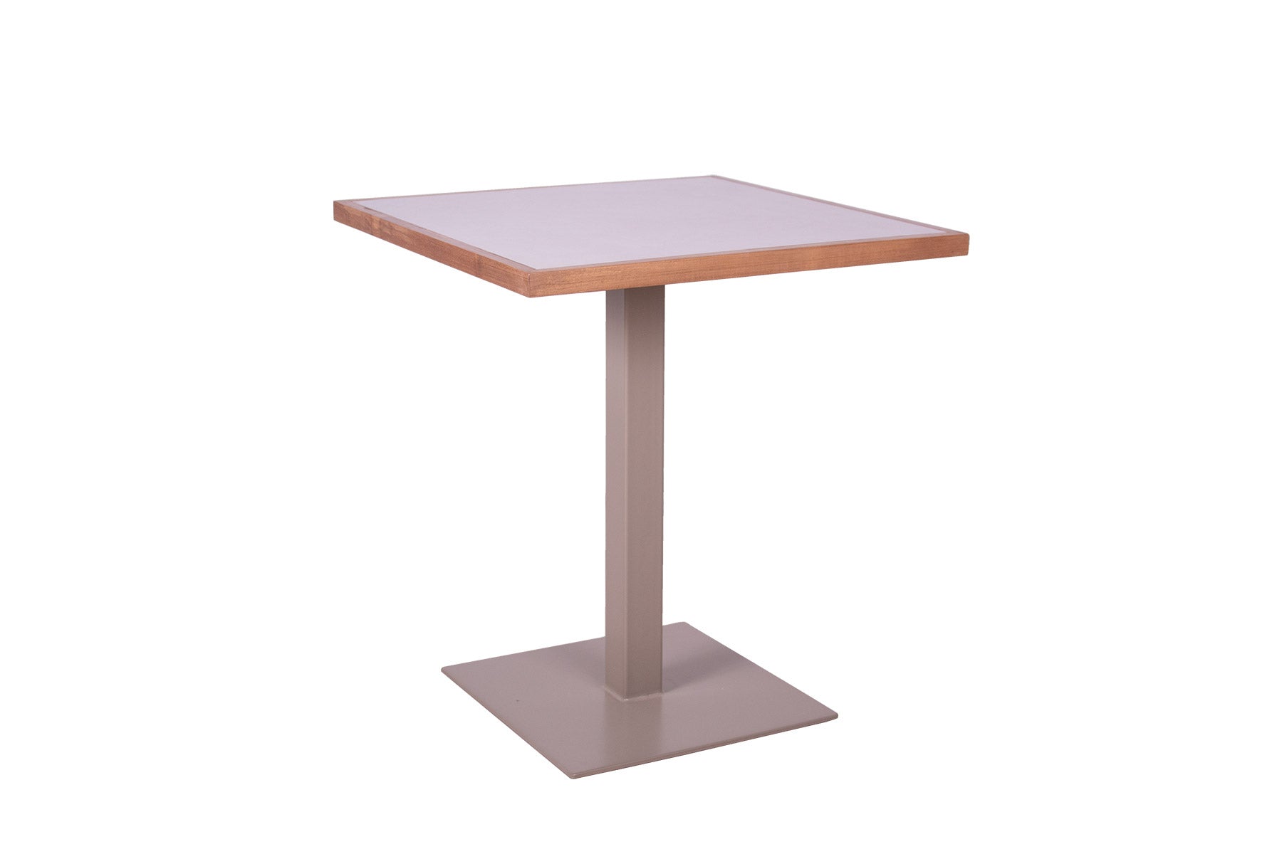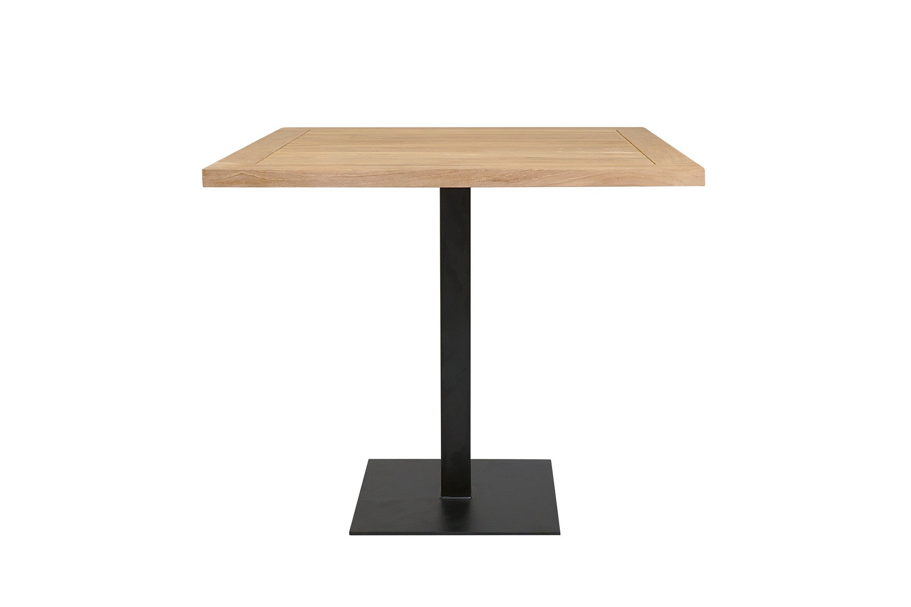 Mesa quadrada, resistente e fácil de movimentar. Ideal para exteriores, tornando-os elegantes e funcionais. Possui o tampo quadrado, em madeira de teca com espessura de 3 centímetros.