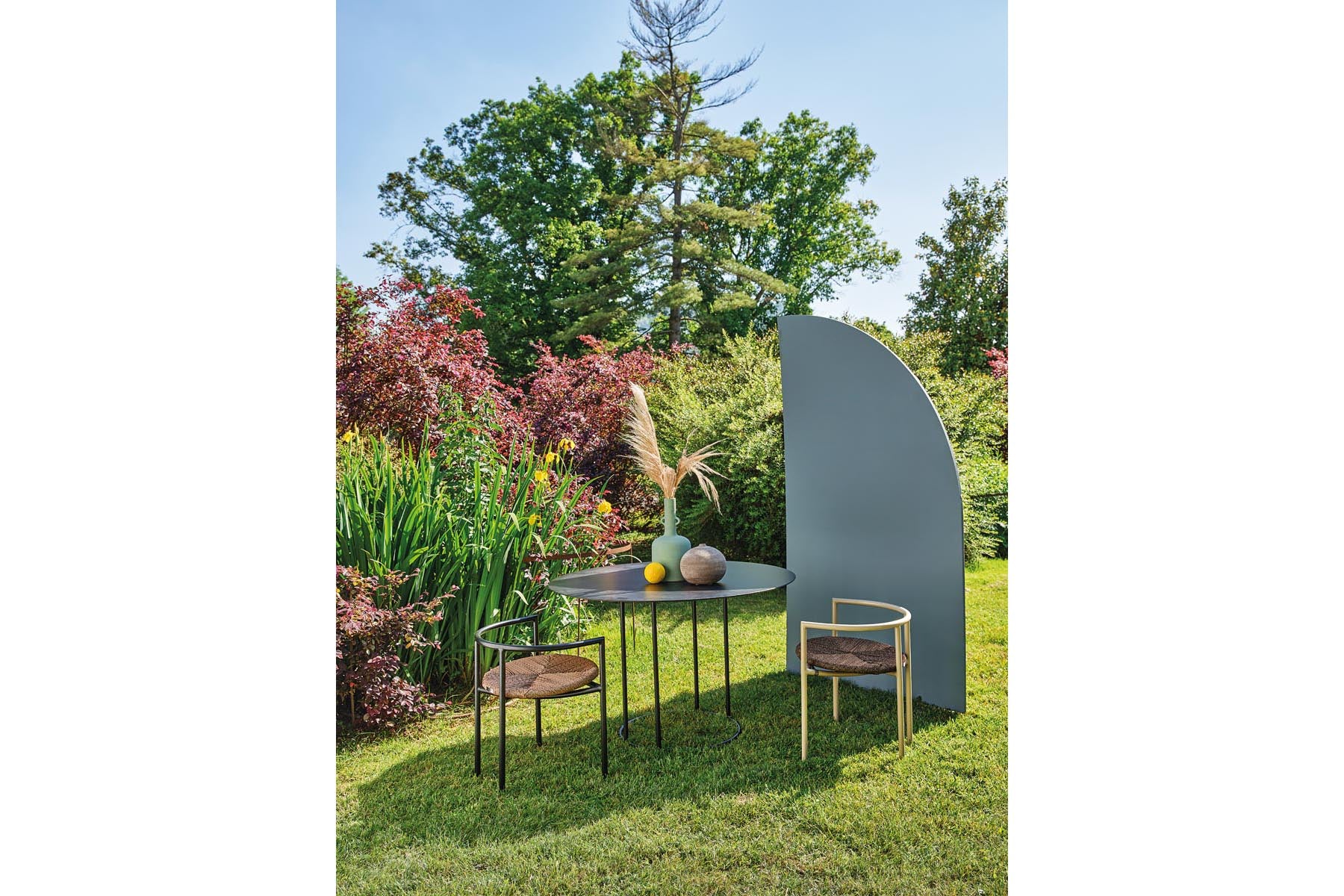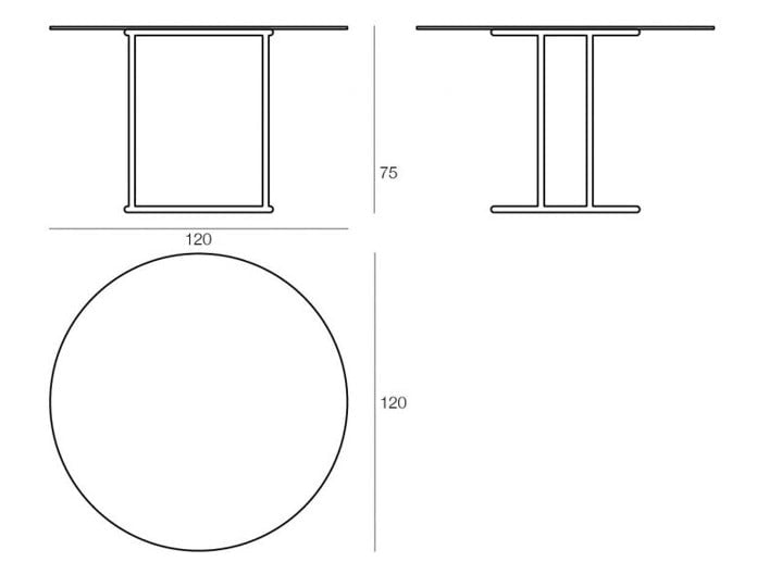Grande mesa redonda da coleção Antipodi, de linhas elegantes e discretas adequadas a um jardim moderno com estilo contemporâneo.