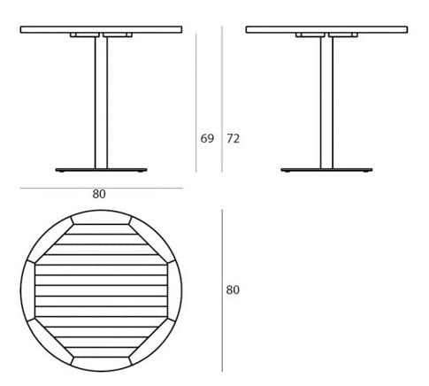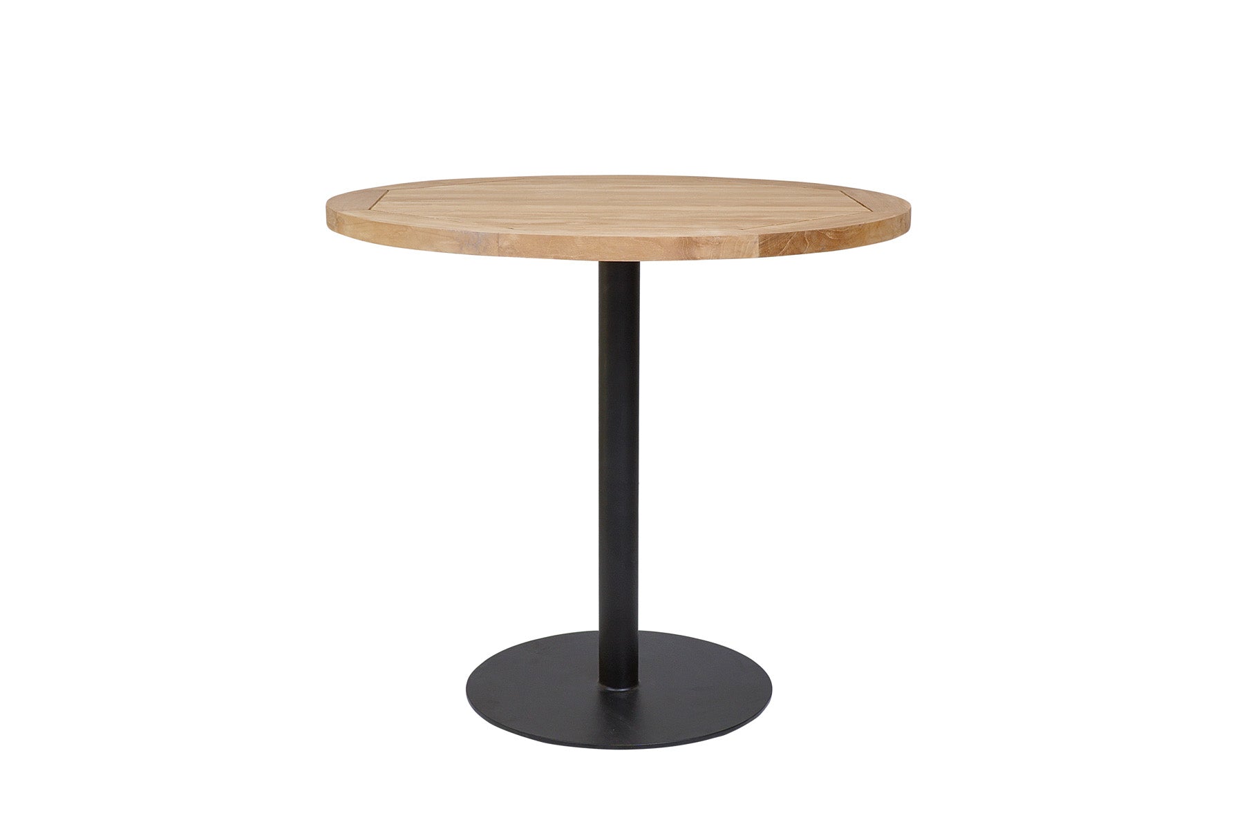 Mesa redonda, resistente e fácil de movimentar. Ideal para exteriores, tornando-os elegantes e funcionais. Possui o tampo redondo, em madeira de teca com espessura de 3 centímetros.