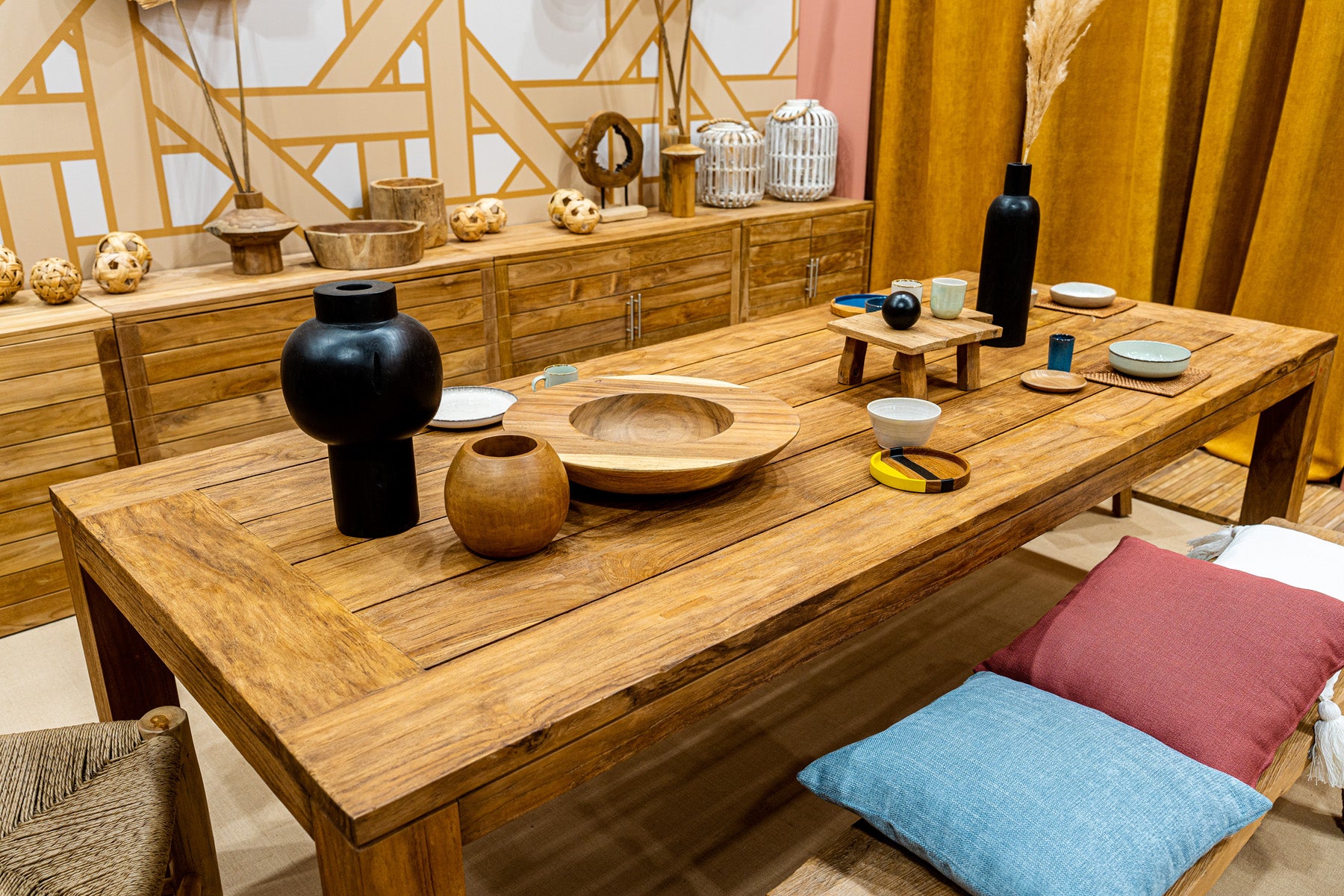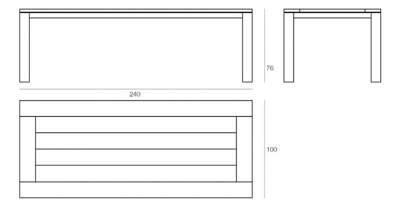 Grande mesa retangular em madeira maciça adequada para receber muitas pessoas. Perfeito para bares, restaurantes, mas também para jardins privados.