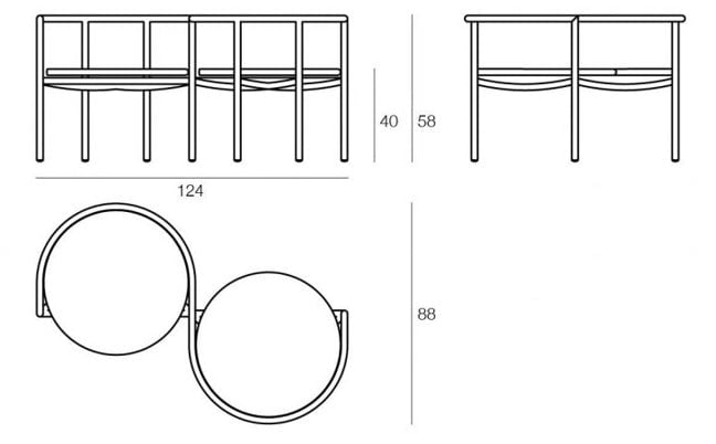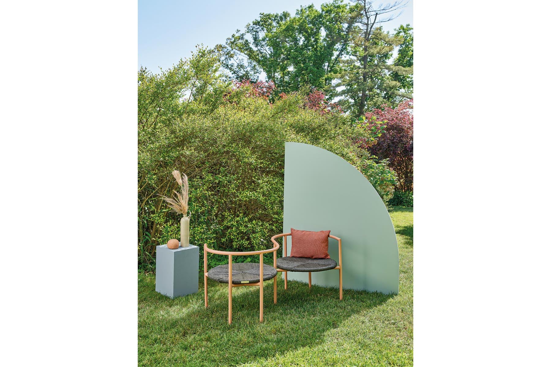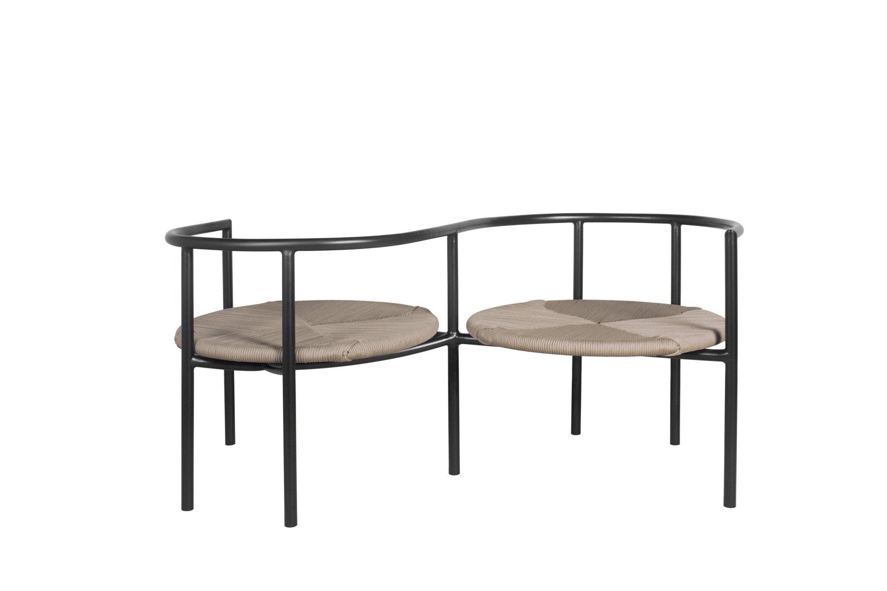 A poltrona exterior Vis à Vis é única, com assento de casal onde todos podem ficar confortáveis mesmo sozinhos.