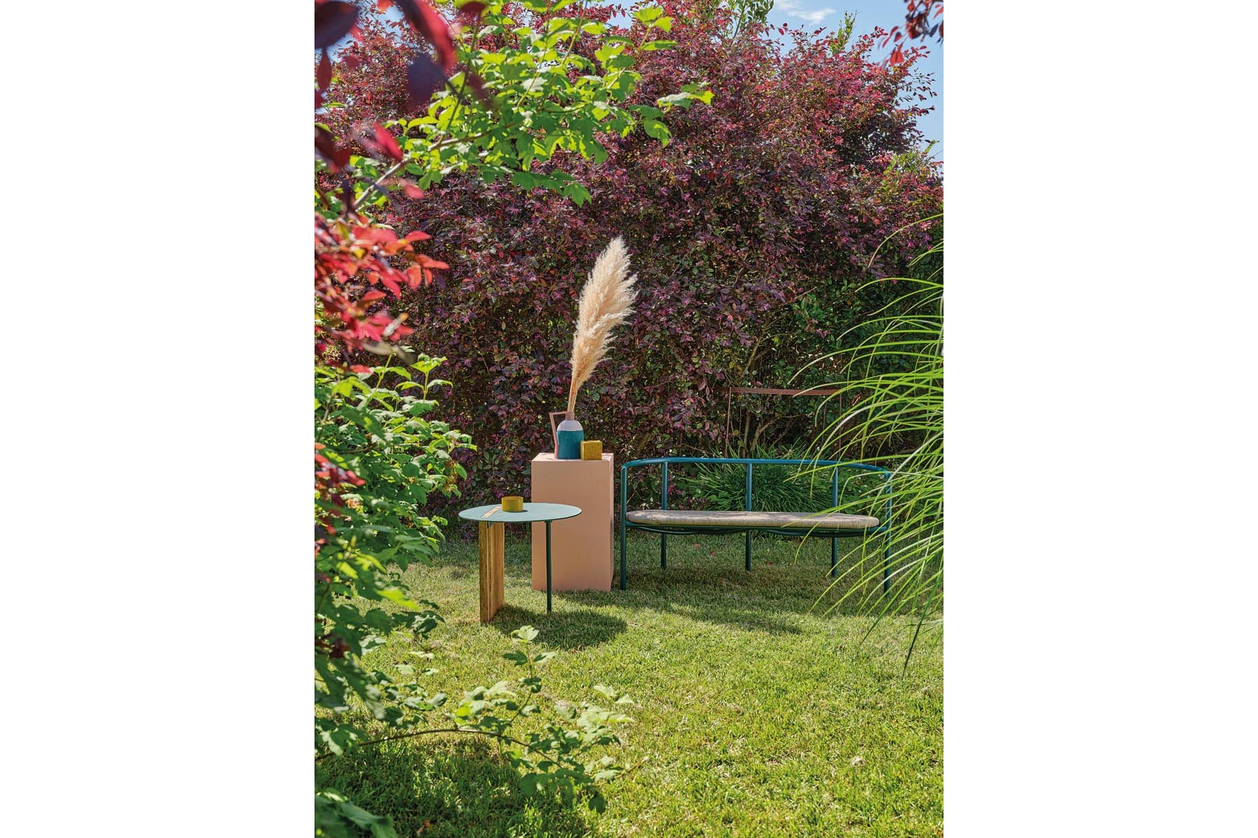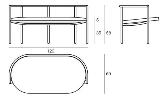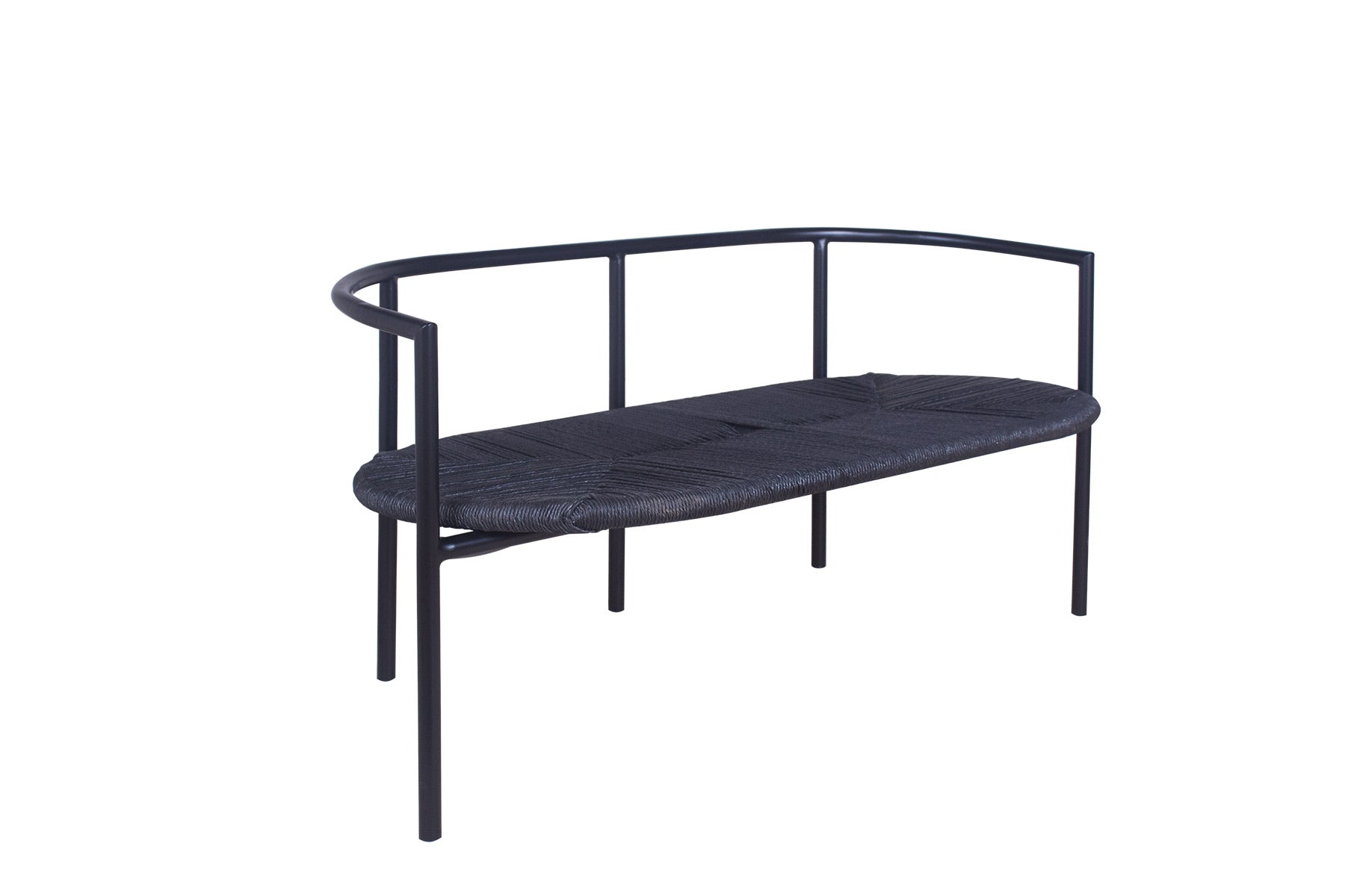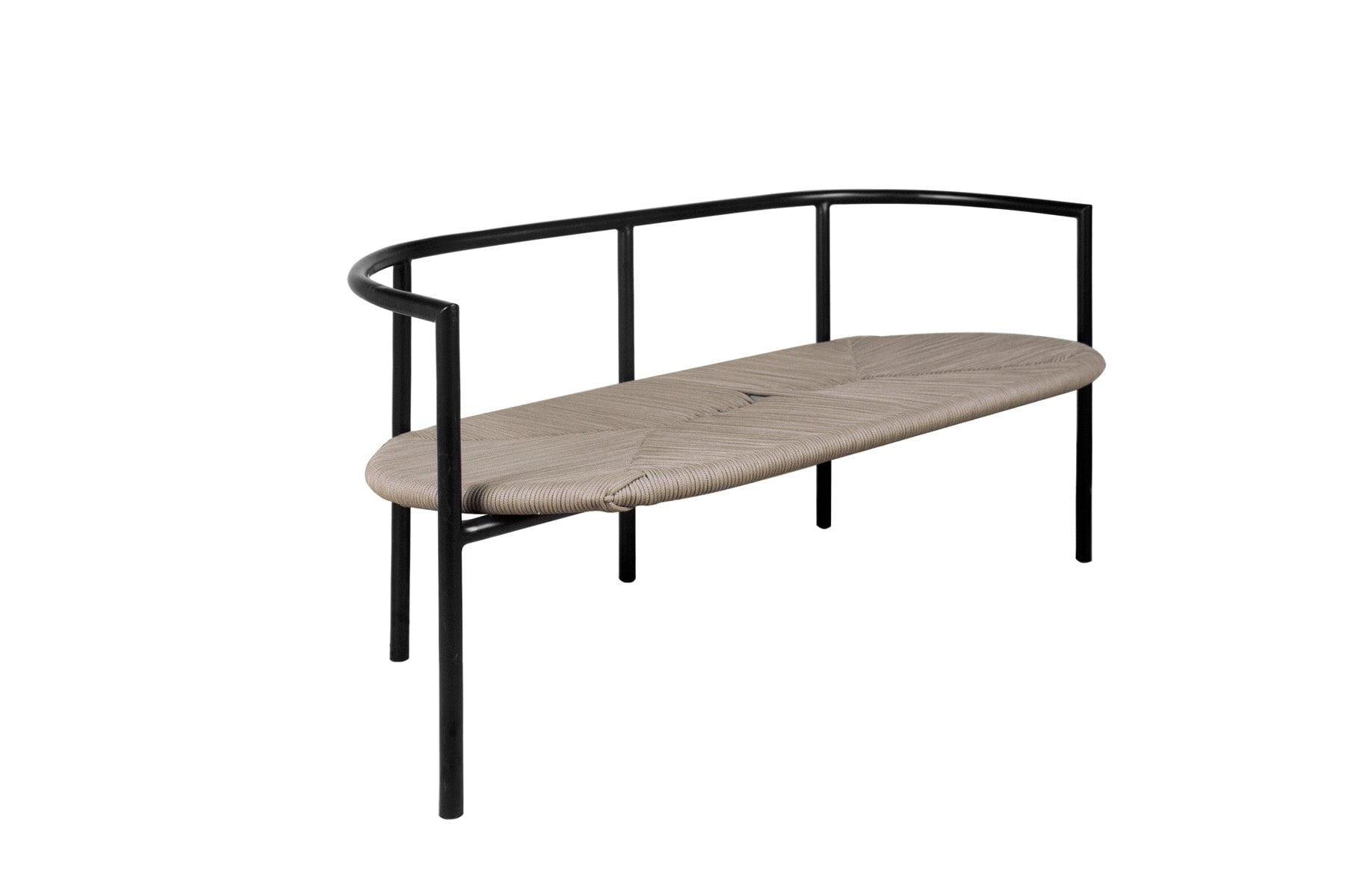 Sofá de jardim de três lugares da série Antipodi, de estrutura mínima mas robusta. Assento em corda que cria um agradável contraste com a estrutura.